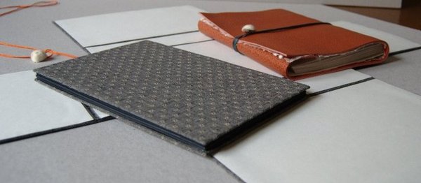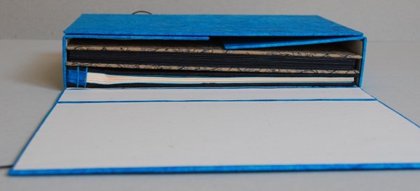 Estuche japonés de bisagra con dos álbumes en acordeón.